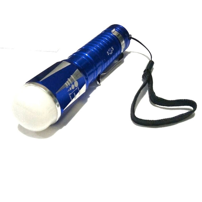 LANTERNA NÃO ELÉTRICA Lanterna Tática – NÃO ELÉTRICA - LED Cree de alto desempenho e ampliação óptica. Lâmpada LED T5.Emissor marca/tipo Cree. Cor branco.Capacidade Luminosa de 150.000 lm.Ajuste de foco regulável, com zoom de 1x a 2000xPossui três modos de iluminação: econômica, forte, e stroboscopio (luz intermitente para sinalizar localização).Com difusor de luz (para iluminação mais homogênea).Produto resistente à água, vedada com anéis de borracha que impedem a entrada de água.Do tipo pocket, com clip e alça para transporte.Corpo em Alumínio adonisado, nas cores prata, preto, azul (com difusor branco) e vermelho (com difusor vermelho).Dimensões: Comprimento 105mm sem zoom / 95mm com ajuste de zoom.Diâmetro no corpo da lanterna 25mm / no foco 30mm / na lente 25mm.Peso aproximado 93g.Alimentação: 3 pilhas palito AAA (não acompanham o produto) Acompanha 1 (um) adaptador para 3 pilhas AAA (que podem ser recarregáveis). (ref. 3416 por R$ 1,50 unidade)Adaptador/ difusor branco para usar como luminária ou emergência.Dimensões: 110 mm de comprimento (125mm com o difusor) x 30 mm de diâmetro do foco.Produto resistente a pequenos choques (1 metro de queda), e a água (sem imersão)Pequena e compacta, com excelente qualidade de iluminação.Visite nosso site em http://prolumen.com.br