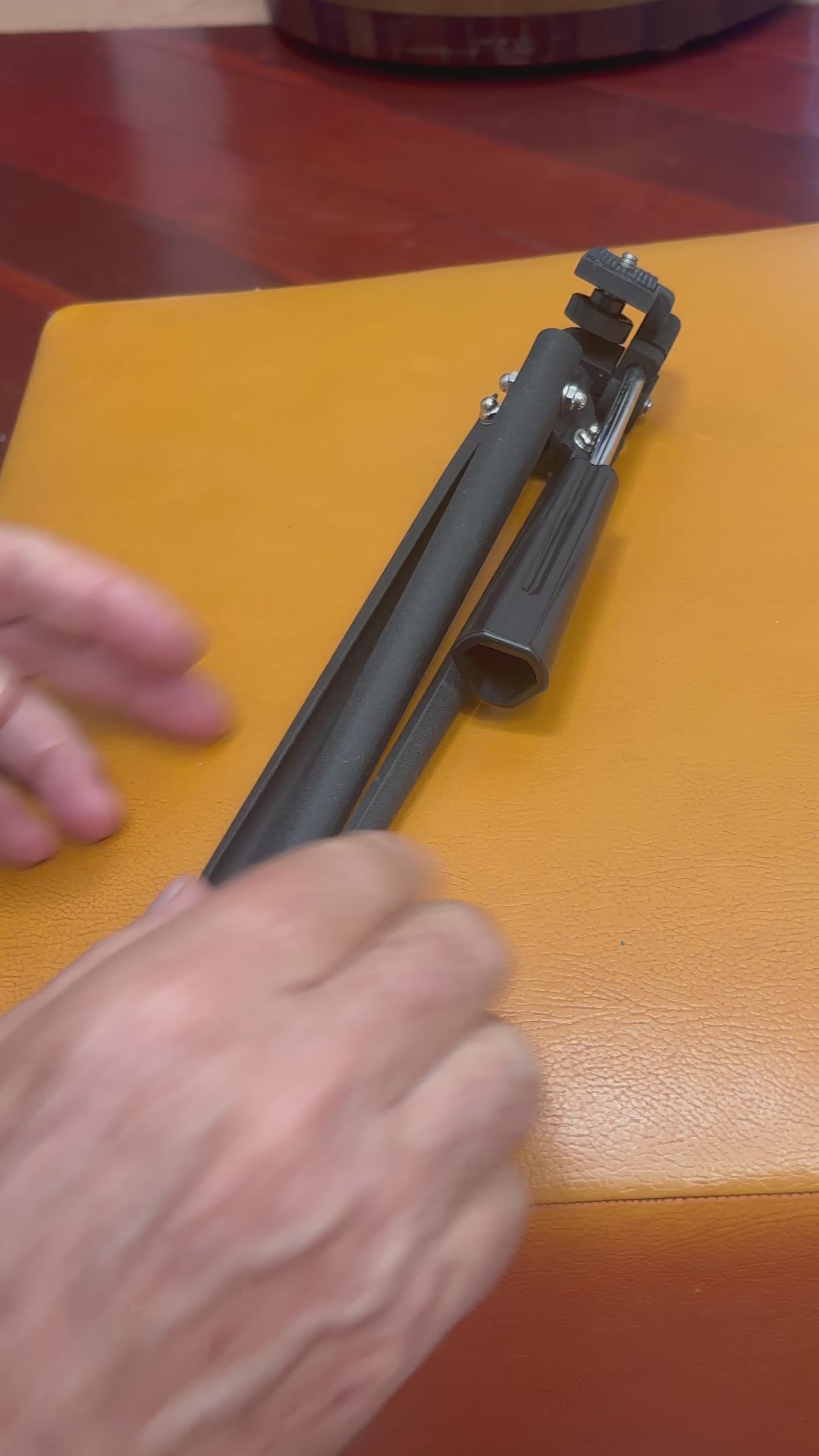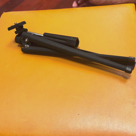 Tripé super versátil, ideal para sseus equipametnos, celulares. luneta, binóculos etc. Super portátil, construído em aço pintado levíssimo, com excelente estabilidade. Dimensões: 310 mm de Comprimento total. Peso : 350 Gramas.